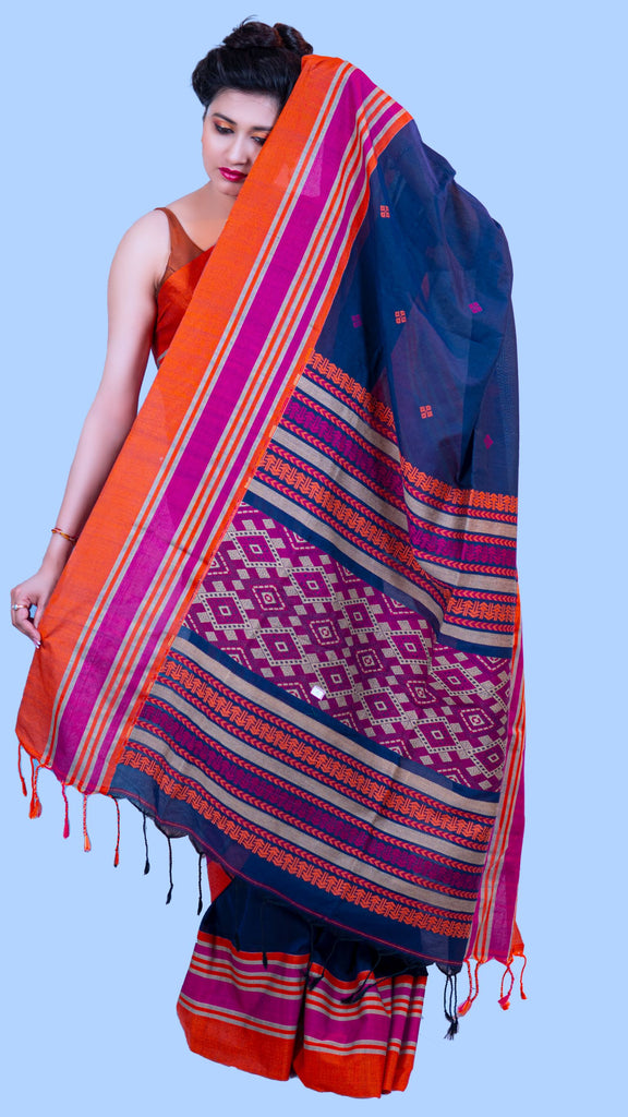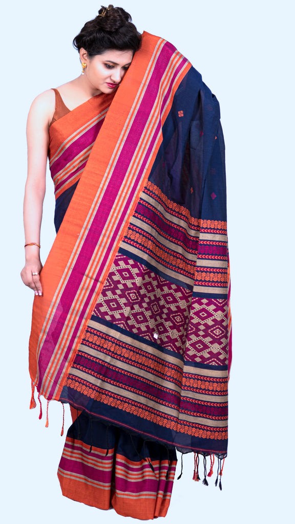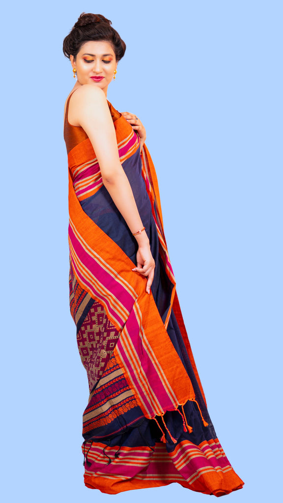 The traditional nature of Manipuri sarees lends an air of sophistication to their wearers. Their impeccable appearance makes them suitable for any event. Manipuri sarees are hand-woven cotton, including traditional hill tribal motifs and floral patterns.