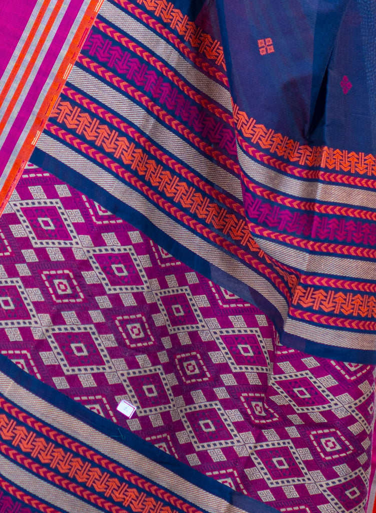 The saree made of cotton is woven by the weavers using either a shuttle loom or a throw loom. The incorporation of temple designs as borders contributes to its magnificent appearance.