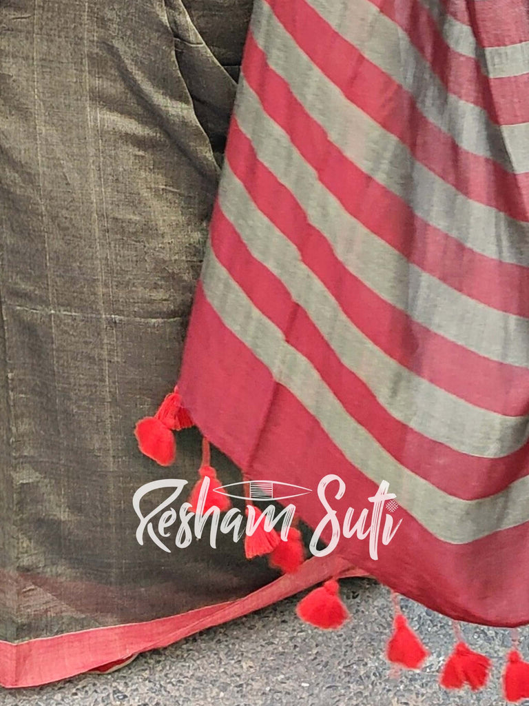 The specific ratio of modal to cotton used in the saree would depend on the desired properties of the fabric. For example, a higher percentage of modal may be used for a softer, stretchier fabric, while a higher percentage of cotton may be used for a more breathable, structured fabric.