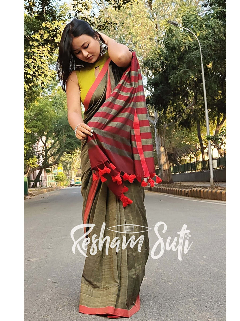 Sarees are traditional garments worn by women in India and other parts of South Asia. They are typically made from a variety of materials, including silk, cotton, and synthetic fabrics. A saree made from modal and finest quality cotton could be a great choice for a comfortable, yet stylish, garment.